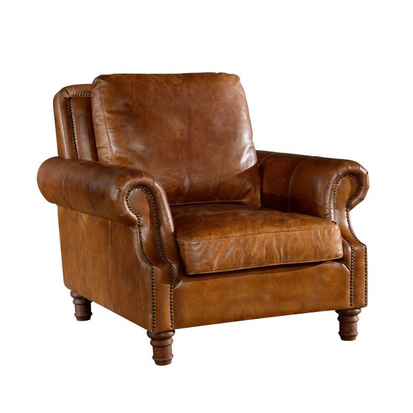 | American Style Retro Brown Leather Comfortable Soft Leather Armchair |